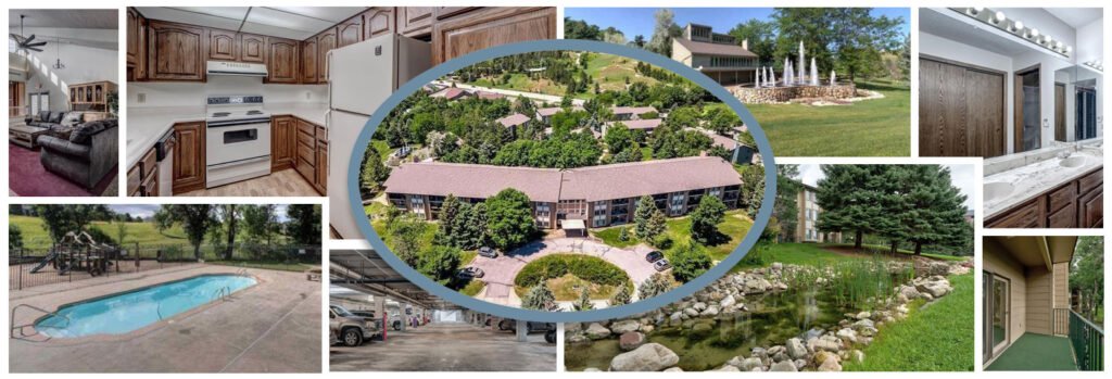 These beautiful condominiums are on the first (unit #3948 and #3951), second (units #3961, #3966, #3968 and #3978) and third floors (units #3982, #3988 and #3996) and are located in the Park West Condominium building in Fairway Hills, with views of the hills. You’ll enjoy easy access to the beautiful Black Hills, you’ll be close to shopping, restaurants and parks. All of the second and third floor units are 2 bedrooms and 2 bathrooms 1,083 sq ft units. The first-floor unit (#3951) is a totally renovated one bedroom, two bath 1,083 square foot unit with a view of the park and stream. Each unit features ample lighting, countertops, backsplash and carpeting throughout as well as a large living room, dining room and kitchen area. The spacious master bedroom comes with an en suite bathroom, including double vanity and walk in shower. You’ll get an indoor parking space within the condo along with an extra storage area in the garage. This is maintenance free living with secured access to the building and heated parking garage. The building has new exterior windows as well as a new elevator. Some of the amenities on location include community washers and dryers on each floor, walking paths, a pool and playground. Also included in the HOA is a community room for family gatherings and parties. Two guest rental suites are available if extra space is needed for guests for an additional nightly fee.